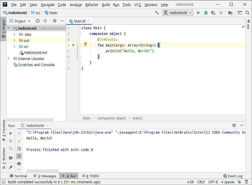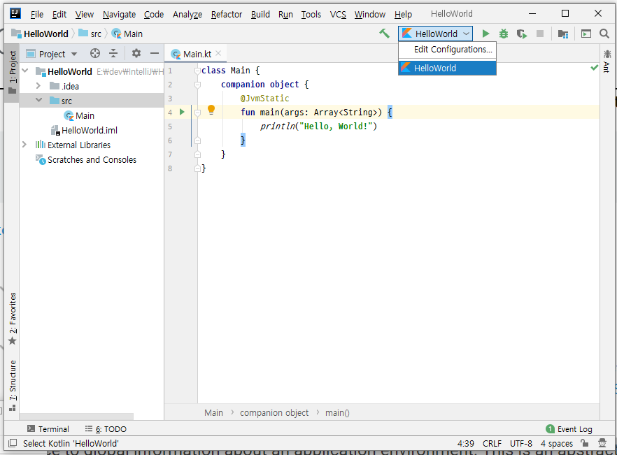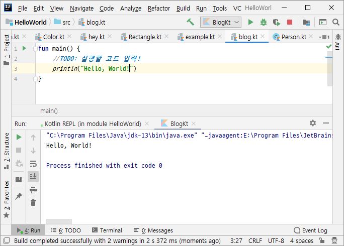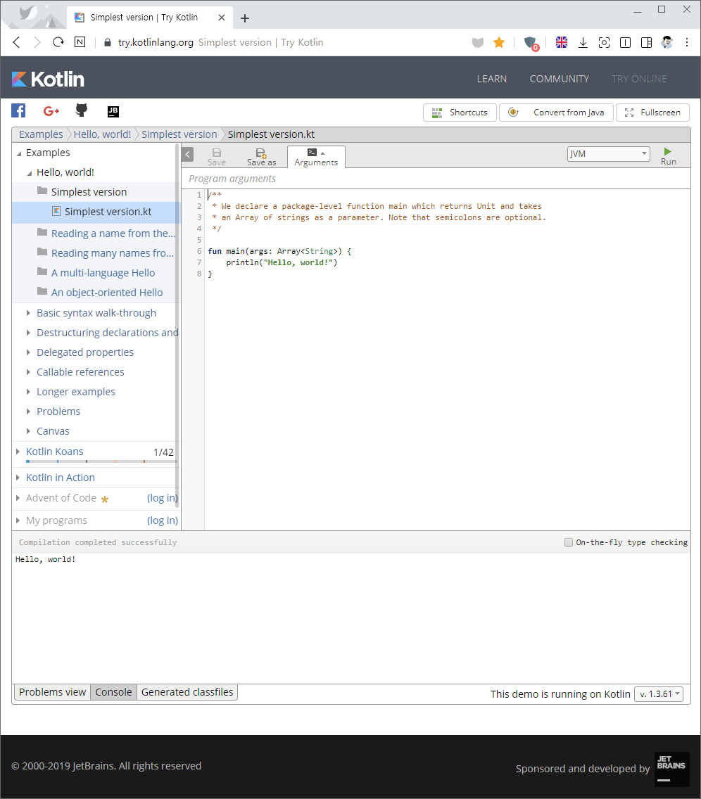 Kotlin 기초강의#1 :: 코틀린 실습을 위한 기반마련 > Hello World 출력 예제 (Web, IntelliJ, REPL)