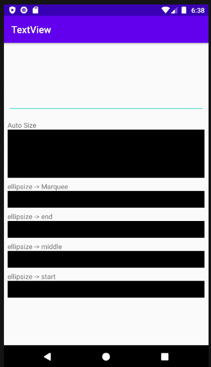 auto size가 multiline을 위한 속성이었다면, ellipsize는 single line을 위한 속성입니다. 해당 속성을 이용하면 흐르는 효과를 이용해 모든 텍스트를 보여주거나, ... 표시를 통해 표시할 내용이 더 있다는 것을 사용자에게 알려줄 수 있습니다.