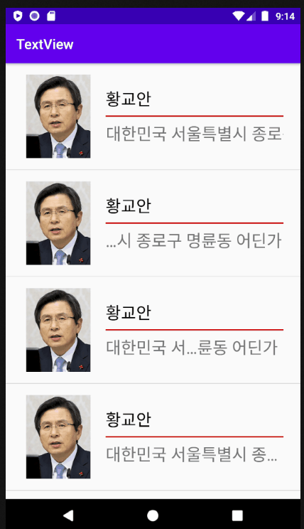 위 예제의 리스트 아이템 주소 TextView에 순서대로 아래와 같은 속성이 적용되었습니다.