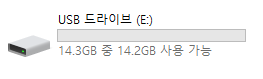 디스크는 0, 1 과 같이 숫자로만 구분되어 있으므로 크기를 통해 USB에 할당된 디스크 번호를 확인해주세요.